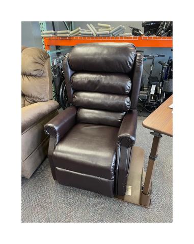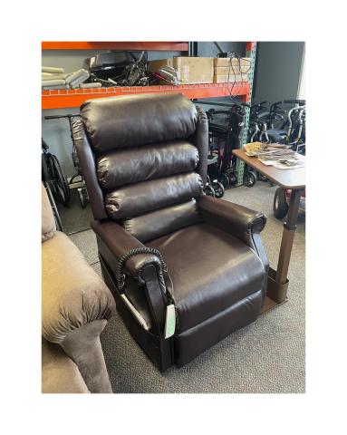Med/Large, Chestnut colored Vinyl, Infinite Adjustments, Backrest Can Be removed, Footrest Extension,