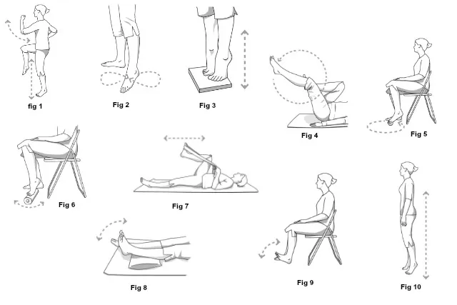 Place a roll of paper towels or a bottle in front of your feet on the floor. Move your feet in a curve across the top of the roll or bottle up to your toes and back to your heels. Do this 15 times.